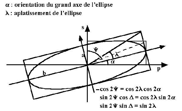 par l'angle "alpha" de leur grand axe et l'aplatissement "lambda" du petit
