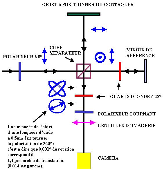 de l'objet et le faisceau polarisé perpendiculaire au plan de l'interféromètre